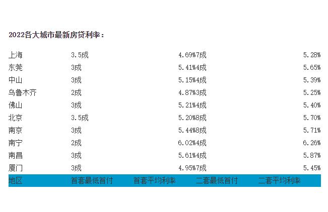 2022年各个城市房贷利率一览表