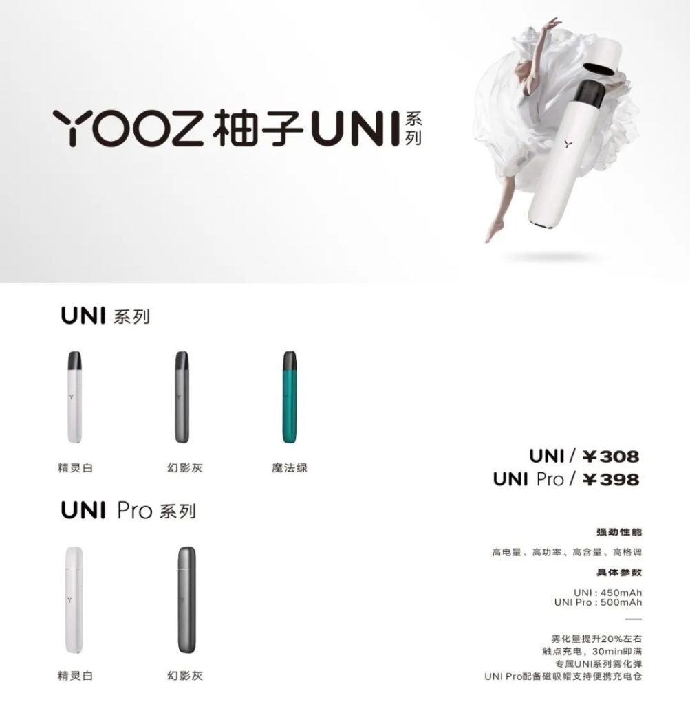 在更多细节的数据方面,UNI的两款新品在电池与雾化弹容量上都分别拥有极大的提升,UNI基础款及UNI Pro雾化杆的电池容量分别是450mAh、500mAh,续航力更强。其雾化弹的2.1ml加大容量,也进一步让消费者在正常使用中可以突破400口以上的抽吸体验。