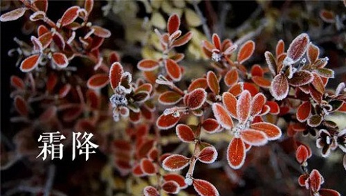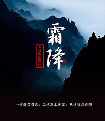 霜降节气含有天气渐冷、初霜出现的意思,是秋季的最后一个节气,也意味着冬天即将开始。《诗经》云:蒹葭苍苍,白露为霜。霜是地面的水气遇到寒冷天气凝结成的,所以霜降不是降霜,而是表示天气寒冷,大地将产生初霜的现象。