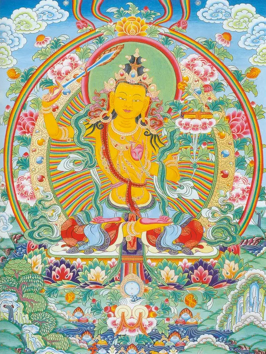 旧称文殊师利。文殊菩萨智能、辩才第一,为众菩萨之首,是象征佛陀智能的菩萨,称“大智”。