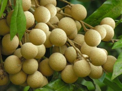 龙眼,又名桂圆。果肉甜美可口,不滋腻,不壅气。果近球形,通常黄褐色或有时灰黄色,外面稍粗糙,或少有微凸的小瘤体。种子茶褐色、光亮,全部被肉质的假种皮包裹。具有补血益气、养心益智、养颜美容等功效。