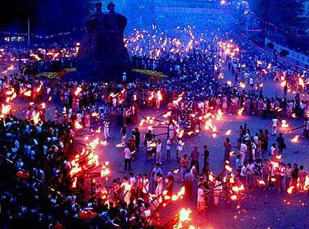 “火把节”也是白族的盛大节日,每年的夏季日历的6月25日,白族人民将举行一项活动,祝人们和动物的谷物丰盛。