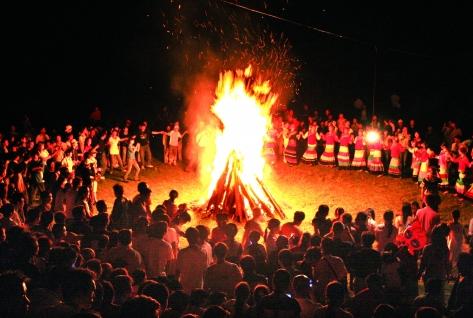 青年男女在寨中大火把周围弹唱、跳舞,彻夜不息。节日期间,还有赛马、斗牛、射箭、摔跤、拔河、荡秋千等娱乐活动,并开设贸易集市。
