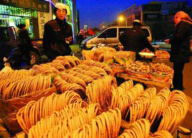 临近古尔邦节三天,家家户户的主妇就忙碌起来了,她们要制作大量的油炸馓子和各种精美点心,为节日期间来家里贺节的亲朋好友和远方的来客准备充足的美食。节日也成为主妇们厨艺与持家德行的\’大展示和大竞赛。
