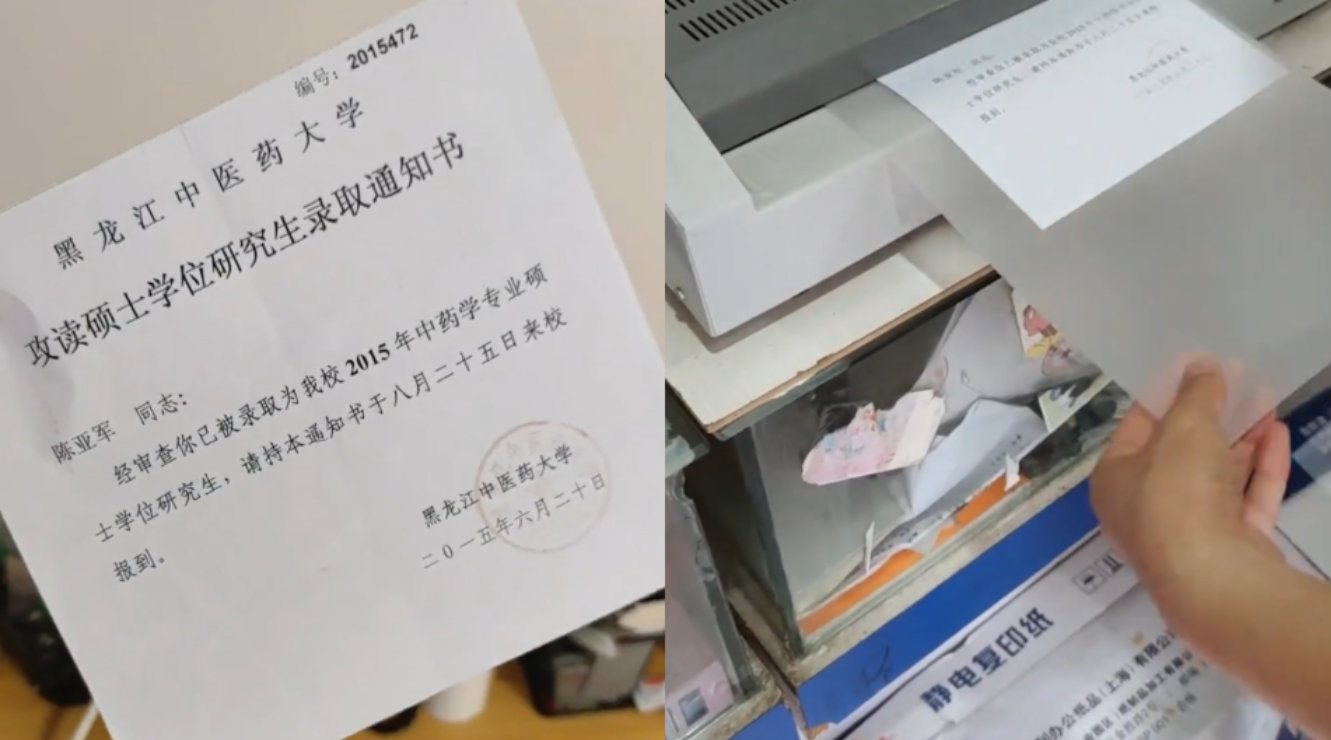 为了避免自己这张 \” 简陋 \” 的硕士录取通知书发生意外,该网友便到复印店对其进行过塑。而复印店老板接过录取通知书后,还询问网友这是不是原件,让网友更扎心了。