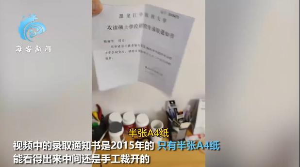 该网友表示,在看到有人说自己学校的硕士录取通知书太过敷衍后表示不服,便晒出了自己的硕士录取通知书。而她的录取通知书只是一张 A4 纸,准确说应该是半张,而且还是纯手工裁剪。