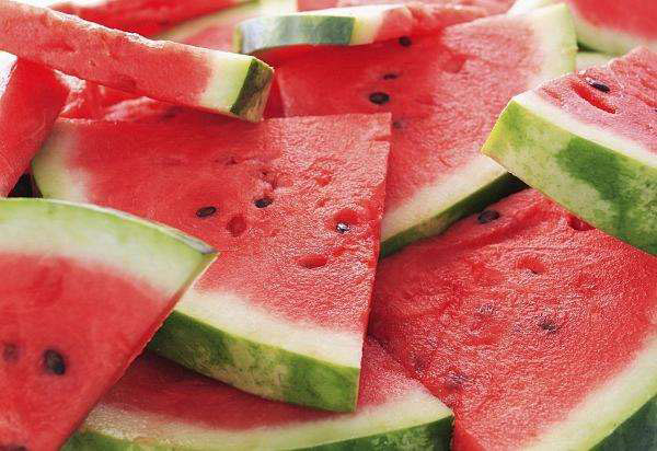 1、西瓜。夏天最适宜吃西瓜,不但可解暑热、发汗多,还可以补充水分,号称夏季瓜果之王。西瓜瓜瓤部分的94%是水分,还有糖、维生素、多种氨基酸以及少量的无机盐,这些物质最能在高温时节有效地补充人体所需的水分和营养;其次,所摄入的水分和无机盐通过代谢成小便,还能带走多余的热量,达到清暑益气的作用。