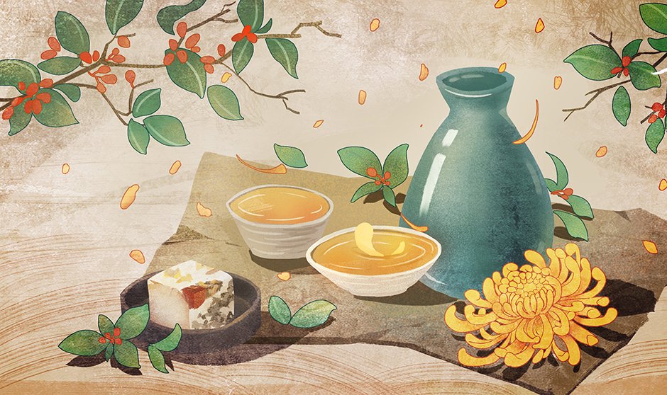 重阳佳节,中国有饮黄花酒的传统习俗。黄花酒,在古代被看作是重阳必饮、祛灾祈福的“吉祥酒”。