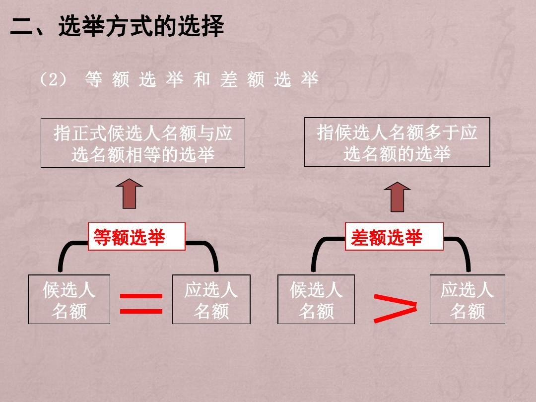 2、先采用差额选举办法进行预选,产生候选人名单,然后进行正式选举。