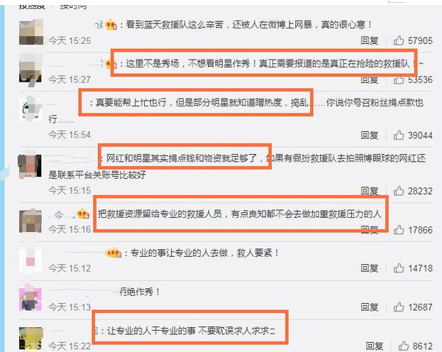 另外,一些娱乐明星团队带了救援车辆和船只,但在专业救援队伍看来,这些团队操作不专业,往往一条船救援,一条船拍摄,“像演戏似的”。