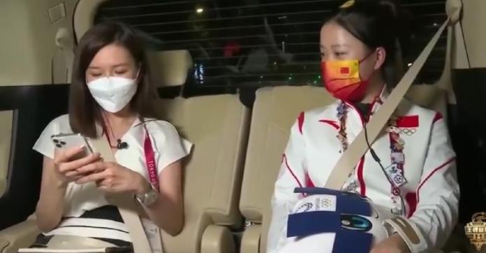 在赛后的直播中,记者给了杨倩一个惊喜,她表示自己有白敬亭的微信,可以让杨倩给白敬亭发一段语音。杨倩通过主持人给偶像白敬亭发了语音,从中说到:“终于反向追星成功啦,特别特别的开心。”