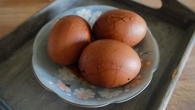 2、茶叶蛋煮好后一定要先捞除,再以汤汁泡蛋即可,若是茶叶一直浸着,茶叶中的丹宁酸会释出,使口感变涩。