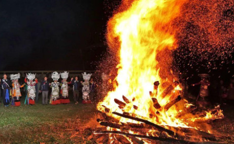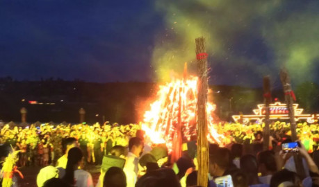 从此,彝族人为了纪念这一天,每年的农历六月二十四这天便要以传统方式击打燧石点燃圣火,燃起火把,走向田野,以祈求风调雨顺、来年丰收。