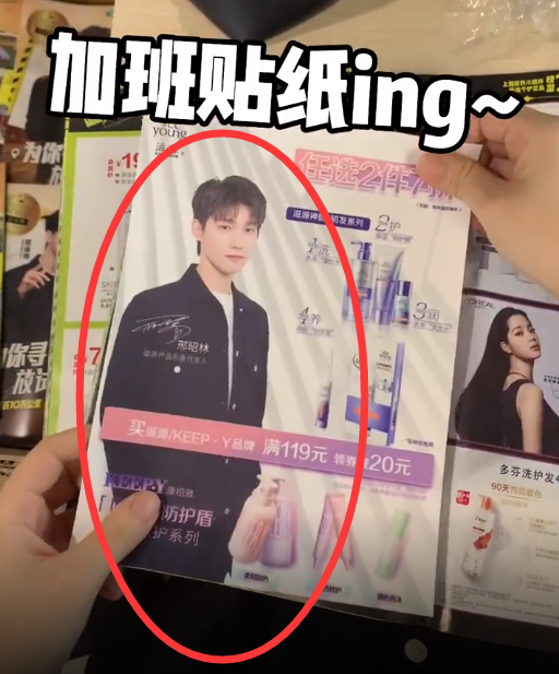 其中,可以很明显看到吴亦凡所代言的某商品直接利用邢昭林的代言贴纸进行了代替。