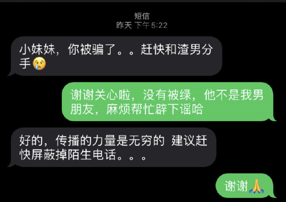 5日下午5时许,网传的唐某“现女友”@瑞拉要上大学 发布微博回应称,自己与唐某仅为普通朋友。“我就陪着唐某吃了一碗螺蛳粉,我没有吃,并且跟他相处的时间里,我全程戴着口罩”。她在微博中表示,双方通过兼职认识,并无男友在常青南园。