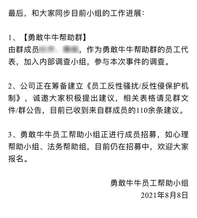 另外,建议公司在当事人同意的前提下额外为当事人做工伤鉴定,并给予合理补偿。以及给当事人及家属提供中长期优质免费的心理咨询服务及回访。阿里巴巴员工希望,借此事件推动员工,特别是女性员工职场反性骚扰、反性侵制度的建立。