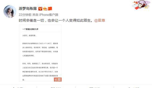 陈露好友王萌站出来为好友发文,谴责霍尊没担当,陈露真心被辜负。