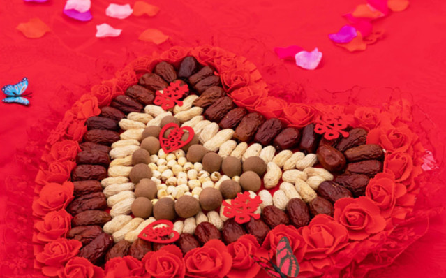 2、摆放在婚床上的红枣、花生、桂圆、莲子数量一定要挑选吉利的数字。