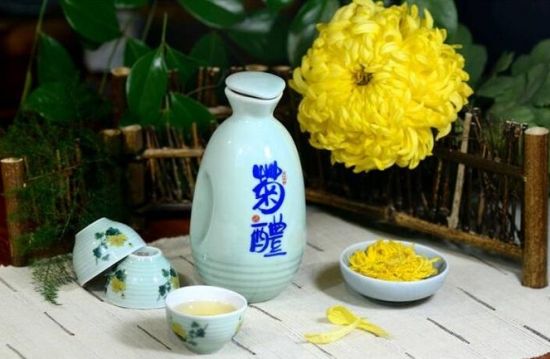 而菊花酒,是重阳节必饮、祛灾祈福的“吉祥酒”。众所周知,菊花不仅有很高的观赏价值,还有很高的药用价值。以菊花酿造的酒,具有养生的功效,十分适合老人饮用。在魏时,曹丕就曾在重阳节赠送钟繇菊花酒表长寿之祝愿。今时今日,子女准备菊花酒孝顺老人,和老人一起把酒言欢,共度佳节,不仅是一种对老人长寿的祝愿,也是共享亲情的美好回忆。