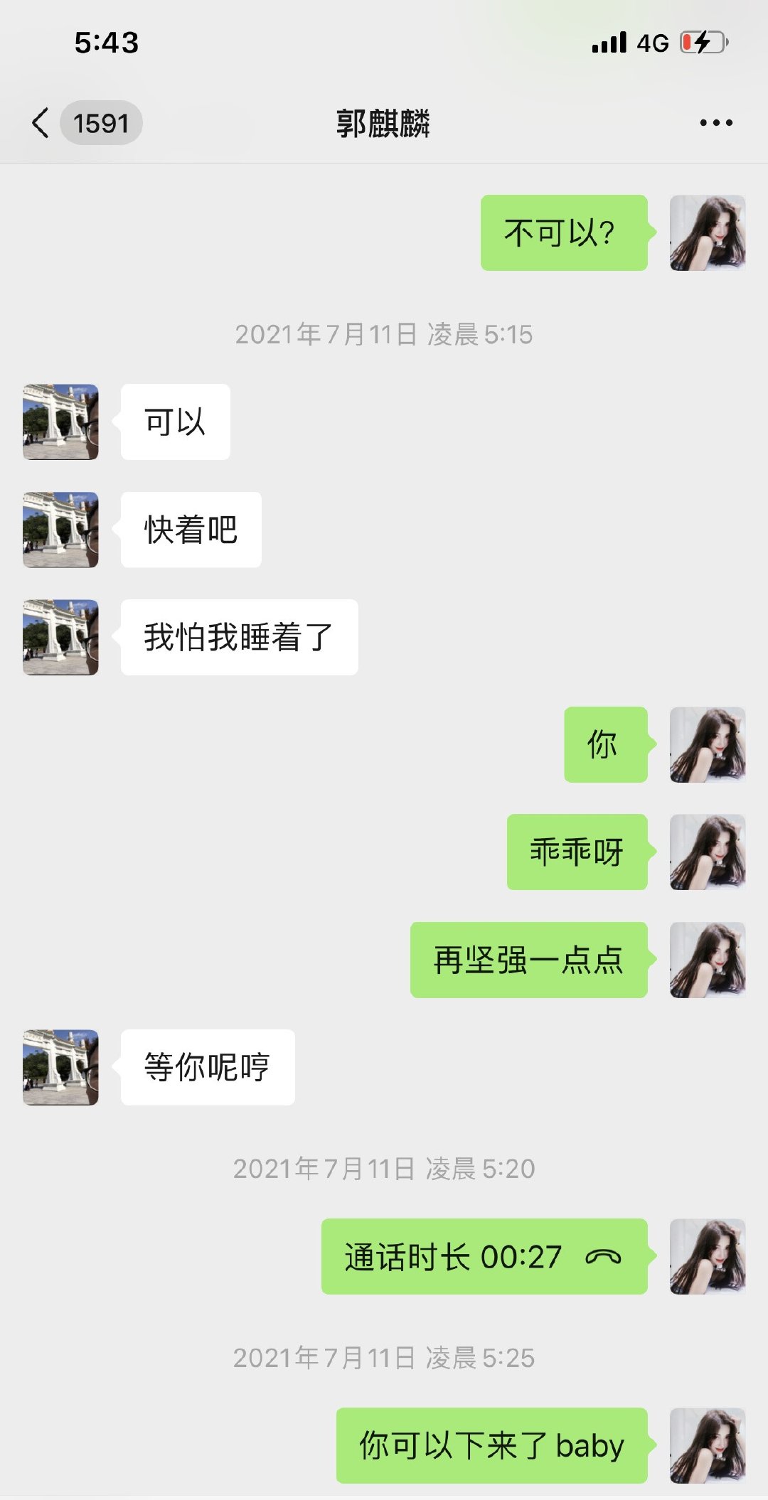 此外觉得郭麒麟不可能做出比较不好的事情,通过聊天记录上没有给暴露出他们个人的图片,之后聊天记录存在一定的虚假,不过后期郭麒麟把事情给澄清说没有发生出约会事情。