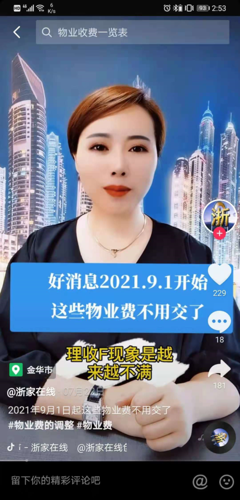 视频中,自称“牛律师”的人告诉大家,9月1日起,根据物业收费新规管理办法规定,公摊水电费、垃圾清运费、砸墙费等全面取消,同时小区公共区域的收费,