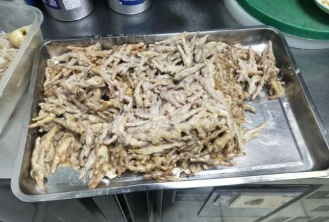 记者在合生汇店卧底发现,每道菜品必加的配菜鸡爪,也有食材问题。