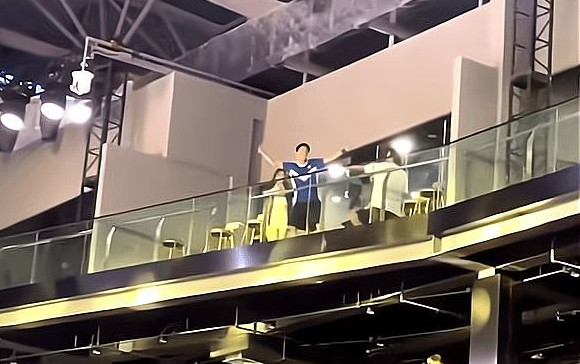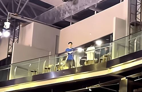 他还对着楼下手舞足蹈,心情似乎不受影响。