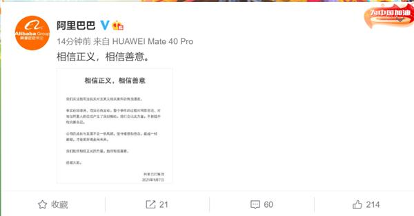 事实已经澄清,司法已有定论。整个事件的过程对阿里巴巴、对每位阿里人都已经产生了深刻触动。我们会以此为鉴,不断提升和完善自己。