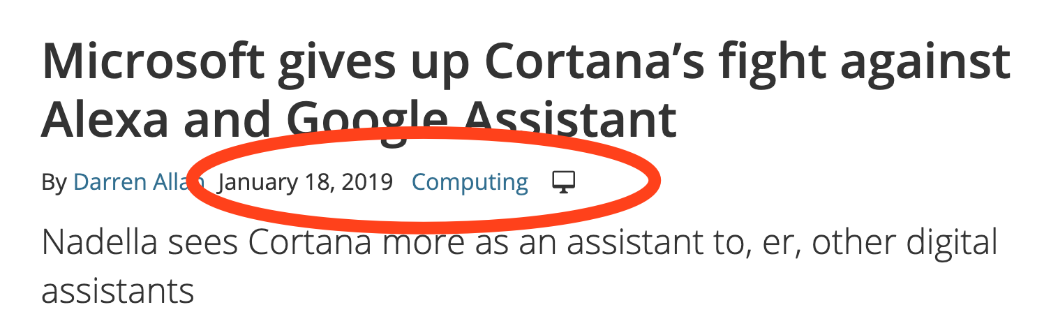就在刚才,我去搜索了一下微软和小娜的消息,搜出来是2018年和2019年年初的『新闻』,那时候的『新闻』就已经开始质疑『为什么微软还不放弃小娜』,那时候的事实就是微软已经自认小娜不配作为亚马逊Alexa和谷歌语音助手的竞争者。