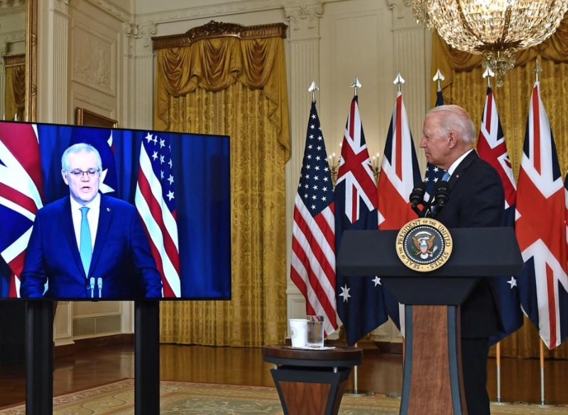 最近,莫里森与美国总统乔拜登和英国首相鲍里斯约翰逊在视频会议上宣布了一个名为 Aukus 的新联盟,以加强军事能力,以应对与中国日益激烈的竞争。