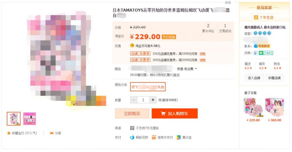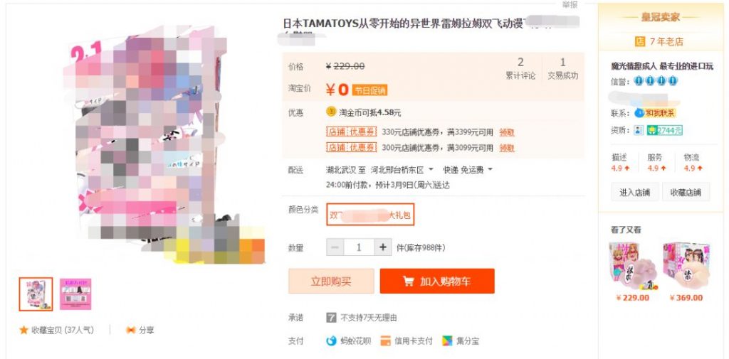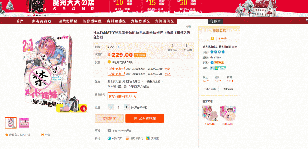 然后找到你想要购买的商品详情页面。比如我想买这个雷姆的手办好久了,正好给大家演示怎样购买。