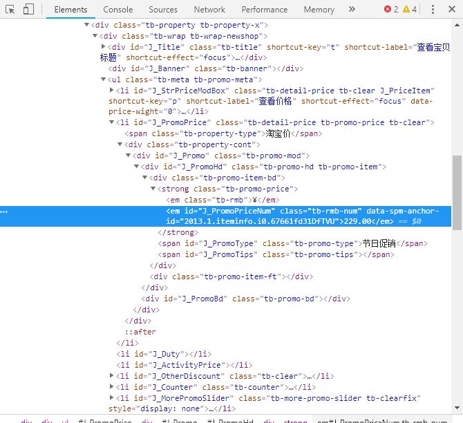 在这个页面中,将光标放在价格的位置,然后点击鼠标右键,选择这个“检查”的按钮。然后右侧就会弹出一个满是代码的窗口。